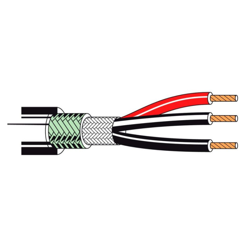 Структура: 3х0,6 мм2 (3х19*0.20 мм), проводник - витой /луженая медь высокой проводимости с низким волновым сопротивлением, AWG 20, плетеный экран из луженой меди (90%), t (-20°C +80°C), диаметр кабеля 6.2 мм, оболочка (PVC)