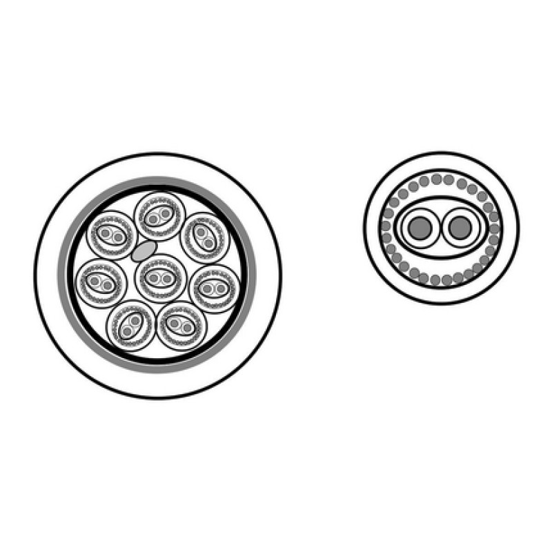 Структура: 8 пар 8х2х0.14 мм2 (2х18*0.10 мм), проводник - витой /луженая медь, AWG 26, диэлектрик проводника - полиэтилен (PE), изоляция (PVC) с нумерацией, экран пары - витой, луженая медь (90%), общий экран - плетеный, луженая медь (80%), t (-30°C +70°C), диаметр кабеля 15.0 мм, оболочка flex-(PVC)