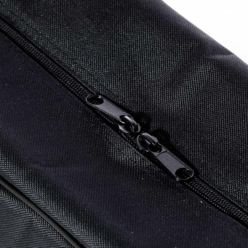 Он изготовлен из прочного материала Oxford 600D, который активно применяется в производстве экипировки для туризма и путешествий за счет хороших свойств для защиты от влаги и ветра. Этому также способствует подкладка толщиной 15 мм. Для удобной транспортировки есть ручка с возможностью фиксации на липучке, а также регулируемый наплечный ремень. Молния прошита нейлоном для защиты от порезов. Для аксессуаров, нот и других предметов есть один карман. На нижней части чехла имеются каучуковые подставки.