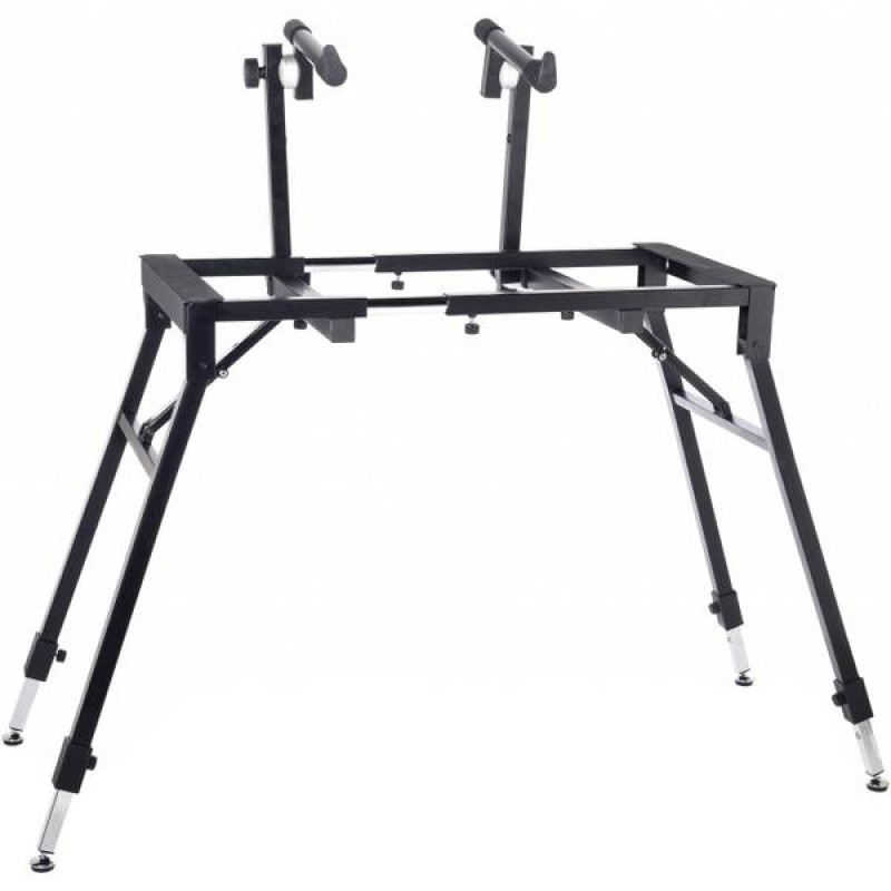 Первый ярус обладает регулируемой высотой от 63 до 83 см, шириной от 66 до 101 см и допустимым весом до 80 кг. Второй ярус оснащен системой наклона CROCODILE и имеет фиксированную высоту 30 см и нагрузку 15 см. Таким образом, на стойку можно установить практически любой синтезатор или MIDI-клавиатуру и удобно расположить ее на сцене для максимально комфортного использования.