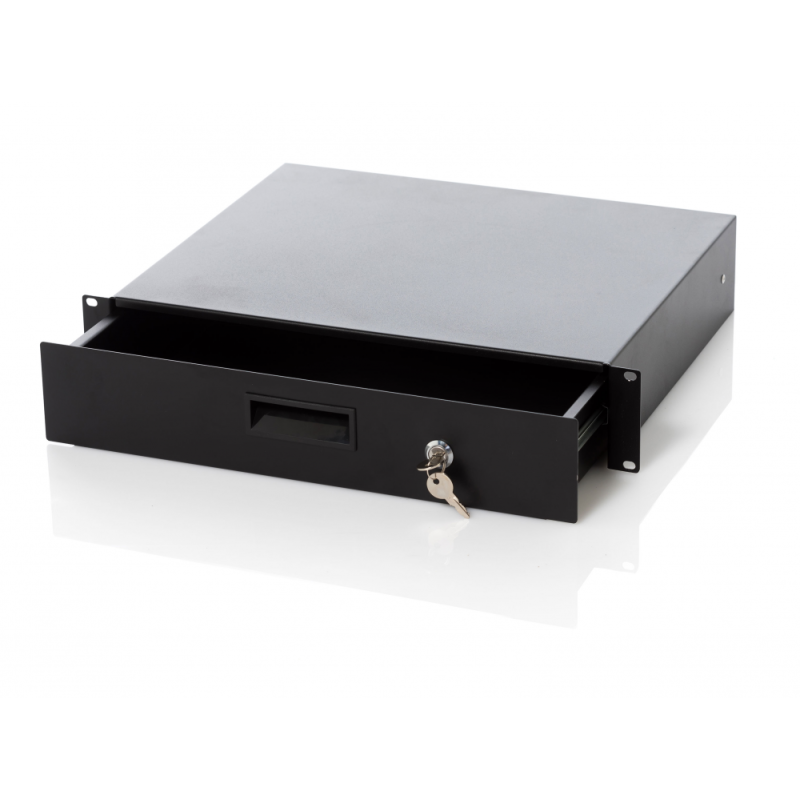 Прочный надежный ящик выполнен из стали и предназначен для монтажа в рэк. Занимает пространство, равное двум рэковым юнитам 19". Глубина ящика составляет 360 мм. Ящик оснащен стандартными рэковыми креплениями, закрывающимся замком и удобной ручкой.