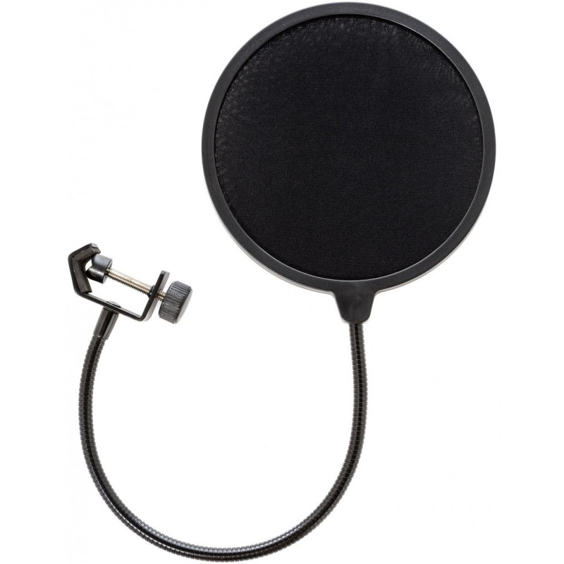 Модель позволяет отфильтровать звучание на стадии звукозаписи и получить чистый и профессионально звучащий результат. Также он защищает микрофон от попадания слюны в капсюль, что может продлить срок службы устройства. Сетка данного поп-фильтра сделана из нейлона, а основание выполнено в виде классической «гусиной шеи», которая обеспечивает необходимую гибкость при подборе положения. Крепление к стойке осуществляется с помощью универсального винтового зажима.