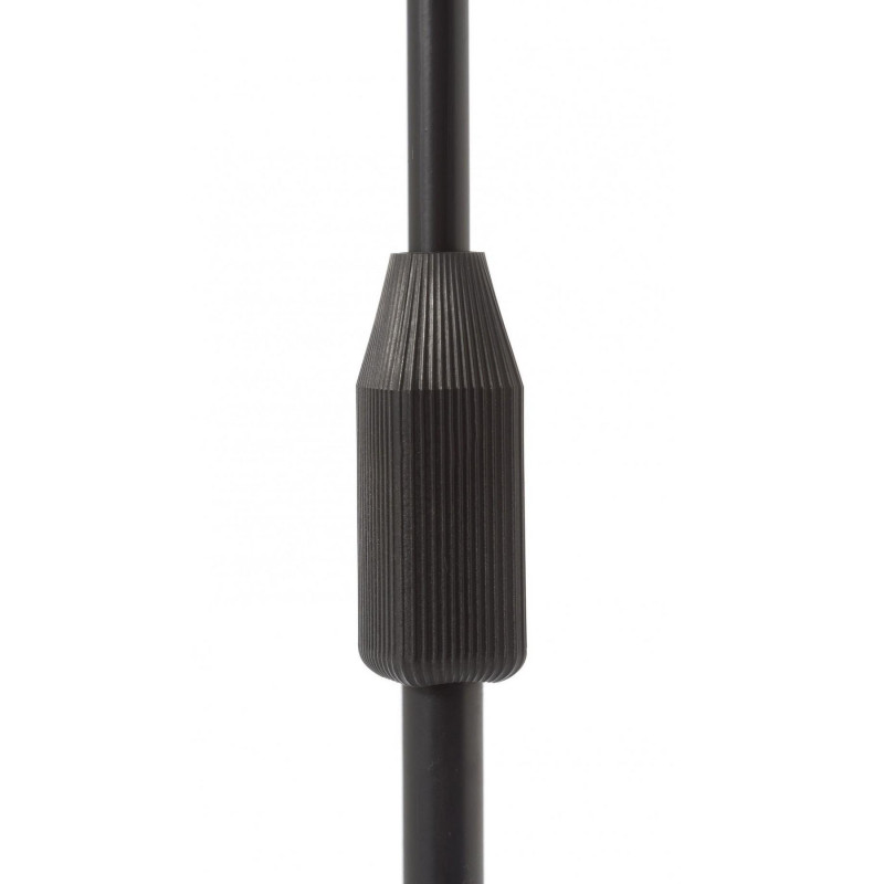 Модель использует прочную металлическую конструкцию с телескопической штангой, оснащенной противовесом для работы с тяжелыми микрофонами. Высоту можно регулировать в диапазоне от 87 до 160 см, а длина стрелы настраивается от 38 до 78 см. Регуляторы и механизмы для настройки выполнены из нейлона. Наконец, на основании имеются резиновые ножки, предотвращающие скольжение и вибрации.
