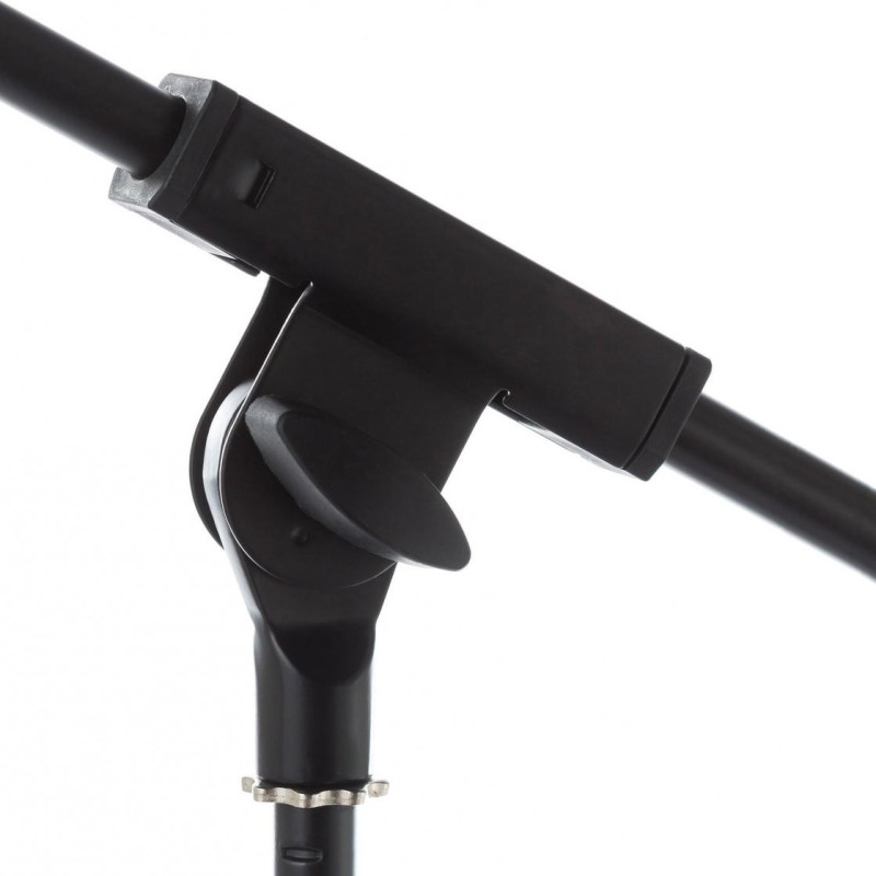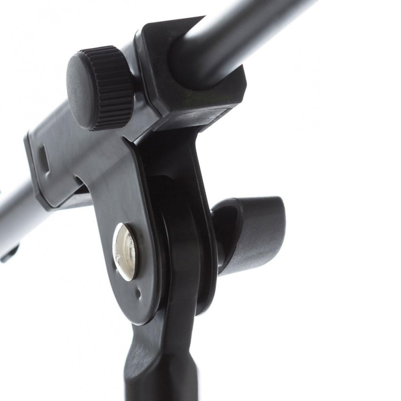 Одна из труб оснащена противовесом для работы с тяжелыми микрофонами. Высота стойки может быть установлена в диапазоне от 98 до 164 см, а длина стрелы равняется 61 см.