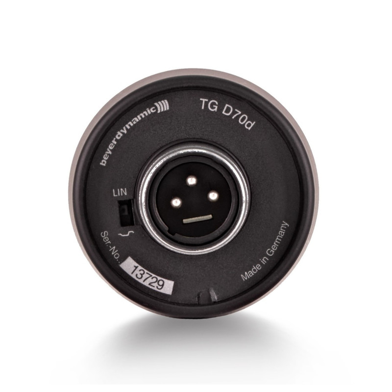 Несмотря на громоздкий внешний вид, этот микрофон можно легко установить даже внутри бас-барабана. Уменьшенная масса мембраны позволяет чётко передавать импульсы, а гиперкардиоидная диаграмма направленности повышает устойчивость к обратной связи. Beyerdynamic TG D70d имеет встроенный пресетный эквалайзер, который позволяет корректировать амплитудно-частотную характеристику даже без участия микшерной консоли. Есть режим линейной