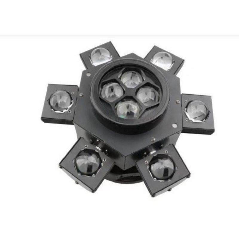 - Параметры лампы: 10 ламп CREE 10WRGB, красный/зеленый лазер 50 мВт.