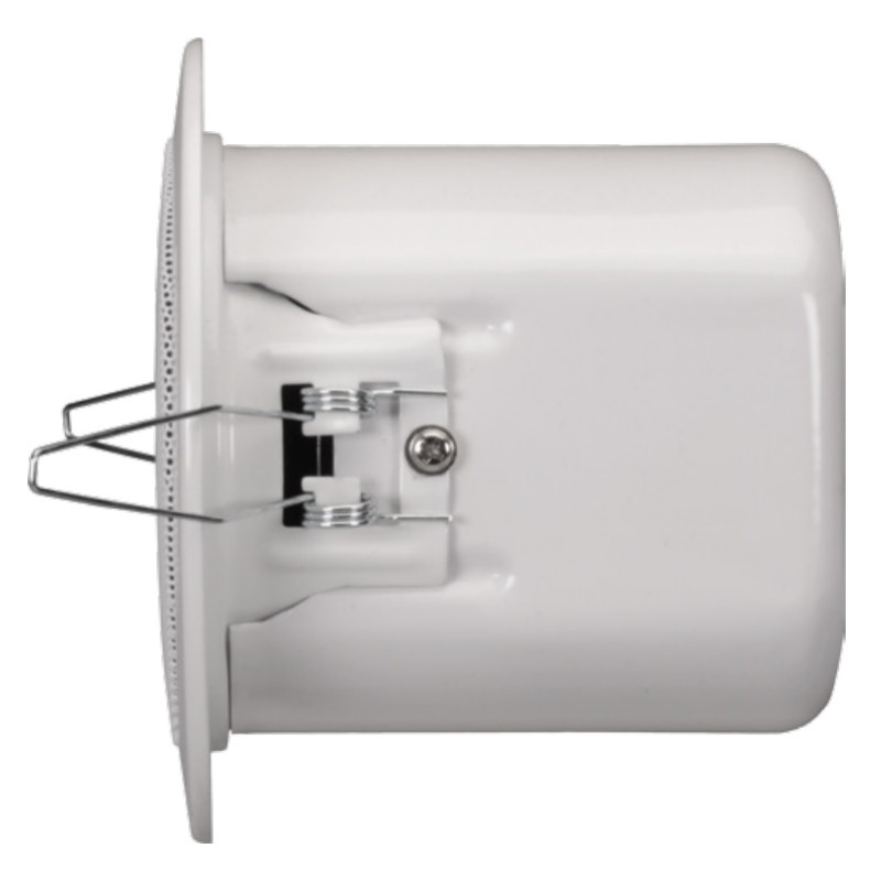 Она оборудована качественным 4" динамиком с диффузором из акустической бумаги, который обеспечивает выходную мощность на уровне RMS 30 Вт и при подключении 16 Ом. АС максимально качественно передает речь и весьма достойно воспроизводит музыкальные программы, за счет чего наиболее актуальна для организации оповещения и фонового озвучивания небольших помещений. При этом компактный металлический корпус поместится даже в минимальном запотолочном пространстве, а защитная сетка с возможностью окрашивания в любой подходящий цвет поможет сделать АС практически незаметной в любом интерьере.