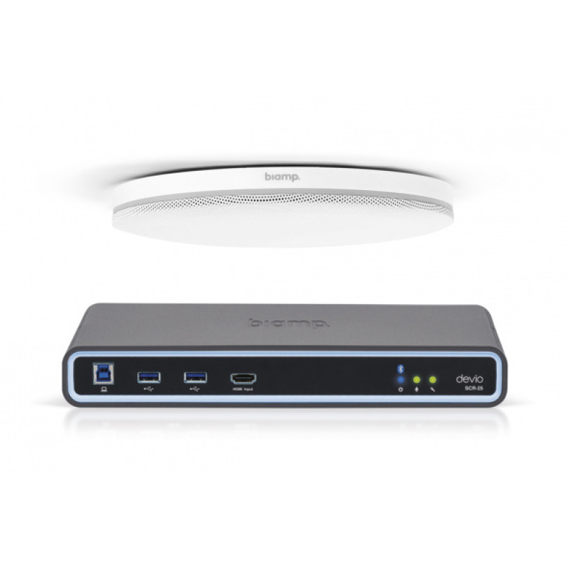 Devio SCR-25: высокопроизводительное решение с DSP и поддержкой BYOD для небольших переговорных комнат, включая полную интеграцию HDMI-аудио, поддержку видео 4K30 и HDCP 1.4, поддержку беспроводной технологии Bluetooth® и проводной гарнитуры VoIP / POTS.