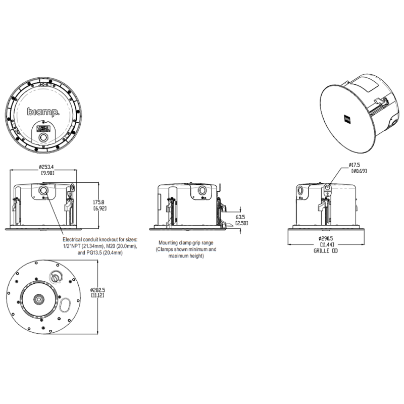 Biamp DX-IC6-B – двухполосная акустическая система для врезного монтажа в потолочные или стеновые фальш-конструкции.