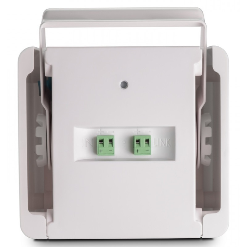 Он оборудован полнодиапазонным 3" динамиком с диффузором из полипропилена, который обеспечивает выходную мощность на уровне RMS 25 Вт (peak 100 Вт) при подключении 16 Ом и 10/5/2.5 (1.25) Вт при работе в линиях 100 (70) В. Подключение к линиям выполняется через клеммные терминалы типа Euroblock 2-pin, установка режима / выходной мощности – поворотным селектором, размещенным под съемной боковой панелью АС. Корпус изготовлен из качественного АБС-пластика и дополнен металлическим защитным грилем. Устанавливается накладным способом на стену с применением комплектного U-образного кронштейна.