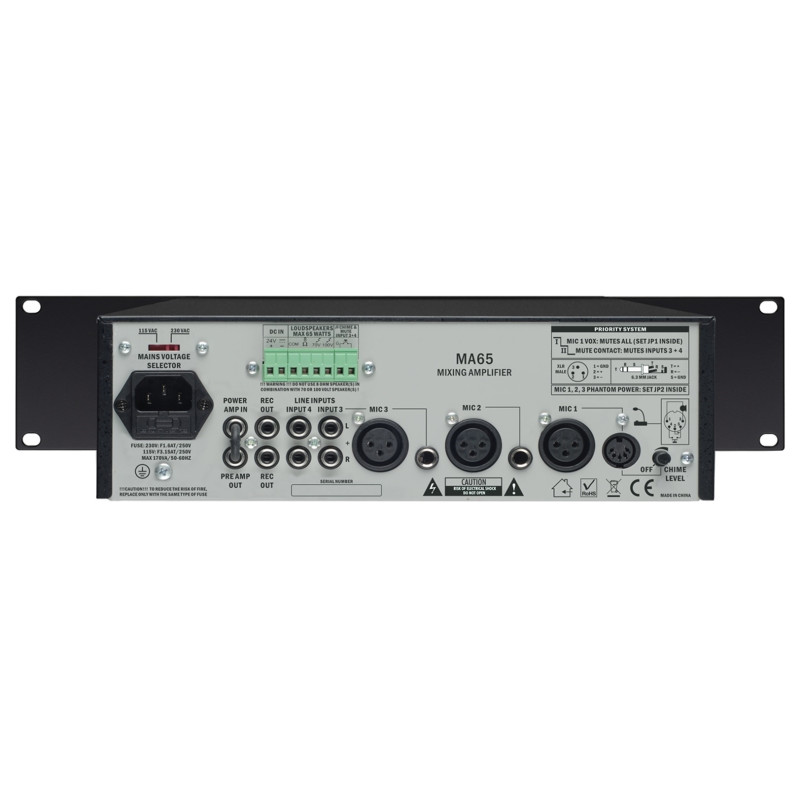 Он позволяет подключать множество источников сигналов, управлять их микшированием, уровнем усиления и тембром, а также устанавливать приоритет трансляции. Встроенный УМ обеспечивает мощность на уровне 65 Вт, а возможность запитки от источника DC 24 В обеспечивает возможность эксплуатации микшера как в стационарных, так и в портативных звуковых установках.