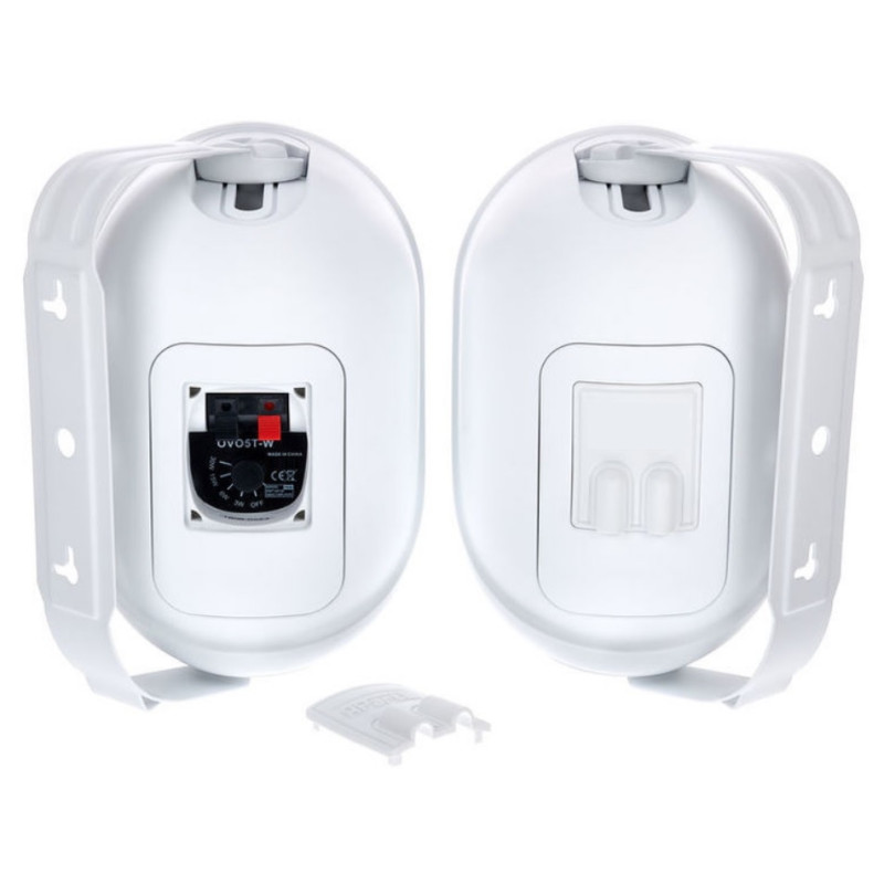 Он оборудован высокоэффективной связкой из 5.25" НЧ вуфера с бумажным диффузором и 1" ВЧ твитера с шелковым куполом, которые обеспечивают выходную мощность на уровне RMS 50 Вт (peak 80 Вт) при подключении 16 Ом и 30/15/6/3 Вт при работе в линиях 100 В. Для подключения к усилительному оборудованию на задней стенке предусмотрены удобные зажимные клеммы Quick-Fit, для выбора режима / выходной мощности – поворотный селектор. АС выпускается в лаконичном корпусе из высокопрочного АБС-пластика с защитной сеткой из стали с порошковым покрытием и предполагает настенный накладной монтаж с применением комплектного наклонно-поворотного кронштейна ли же просто размещение на любой горизонтальной поверхности.