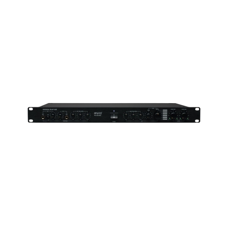BIAMP PM7400MKII - это многофункциональный стерео предусилитель, с независимым контролем уровня громкости для двух стерео зон, например, 2 микрофонных и одного из четырех линейных стереовходов.