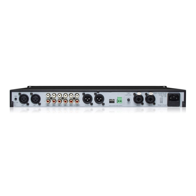 - Двухзональный стереомикшер, 1 балансный и 1 небалансный линейные выходы с регуляторами уровня громкости;