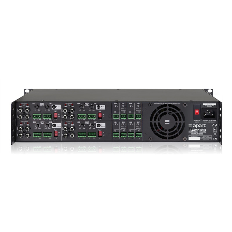 BIAMP REVAMP8250 - это цифровой усилитель с выходной мощностью 8 x 250 Вт на нагрузке 4 Ω или 4 х 650 Вт на 8 Ω в мостовом режиме.