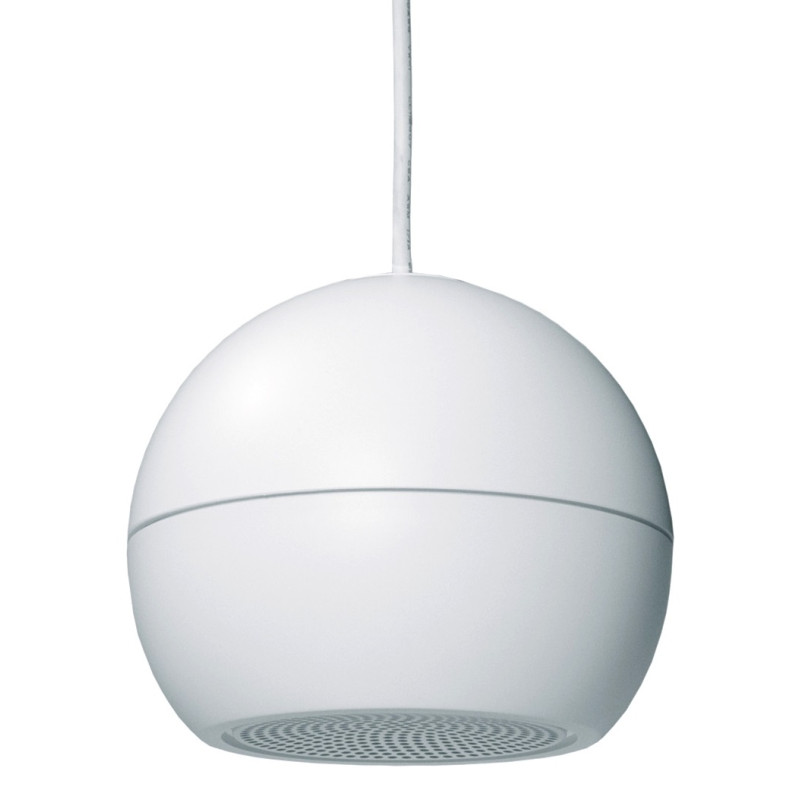Она оборудована высокоэффективной связкой из 5.25" НЧ вуфера с бумажным диффузором и 1" ВЧ твитера, которые обеспечивают выходную мощность на уровне RMS 16 Вт (peak 25 Вт) при подключении 8 Ом и 16/8/4 Вт при работе в линиях 100 В. АС изготовлена в шаровидном корпусе из качественного АБС-пластика и защищен по стандарту IP53. Для подключения к акустической линии и крепления АС к перекрытию предусмотрен усиленный кабельный вывод длиной 4.5 м.
