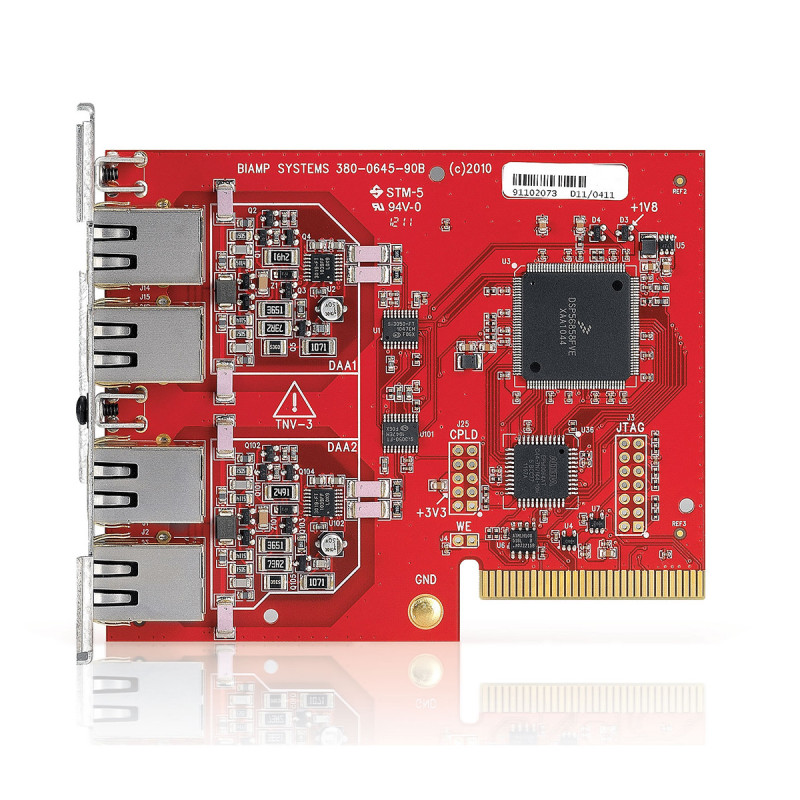 Данная карта позволяет напрямую подключаться к аналоговой телефонной линии. Каждый канал карты имеет систему эхо- и шумоподавления, определитель ID входящего сигнала, декодер тонального сигнала. Благодаря этой карте Tesira является мощной и универсальной платформой для создания конференц-систем.