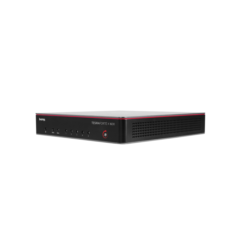 TesiraFORTE X 1600 — это DSP-процессор для конференц-залов с несколькими сетевыми и аналоговыми точками подключения аудио, с 16 каналами акустического эхоподавления (AEC), назначаемыми на любой цифровой или аналоговый вход.