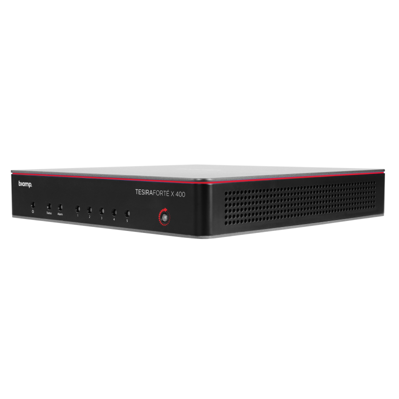 TesiraFORTÉ X 400 - это цифровой сигнальный процессор для конференц-зала с возможностью подключения цифровых и аналоговых источников аудиосигнала, с 4 каналами эхоподавления (AEC), назначаемыми на любой цифровой или аналоговый вход.