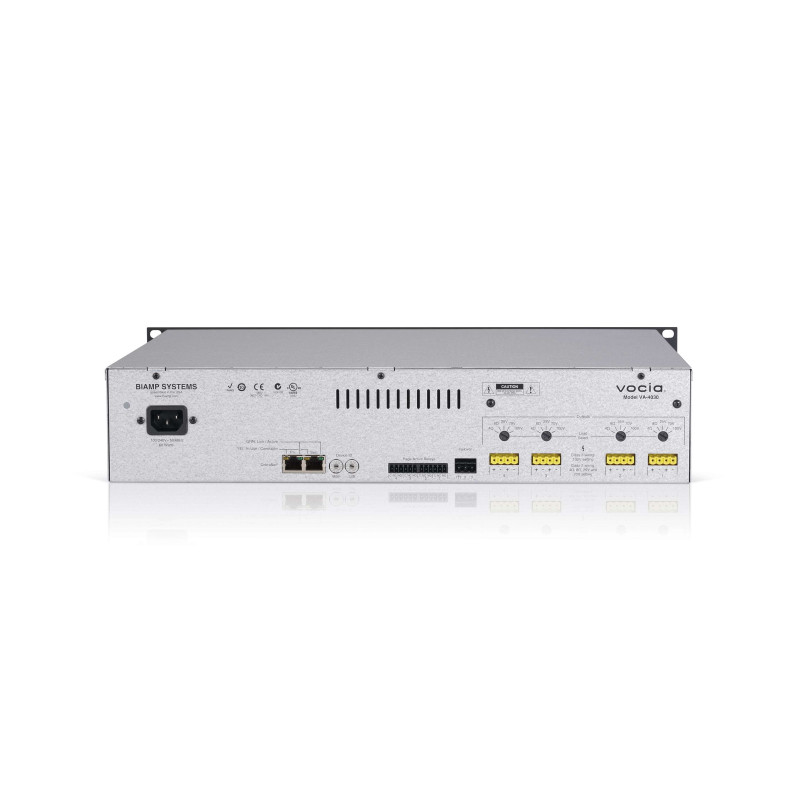 Цифровой сетевой четырехканальный усилитель BIAMP Vocia VA-4030 применяется в цифровых системах звукофикации и музыкального вещания, в которых передача данных между приборами осуществляется по протоколам CobraNet.