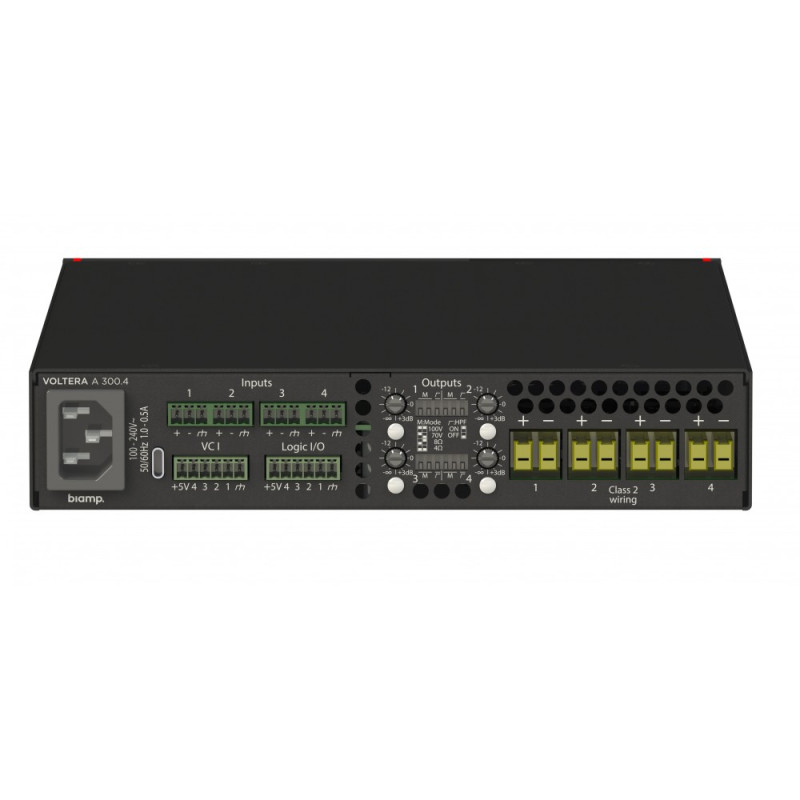 Biamp Volterra A 300.4 - Это компактный четырехканальный усилитель мощности в полуэтажной стойке с общей выходной мощностью 300 Вт.