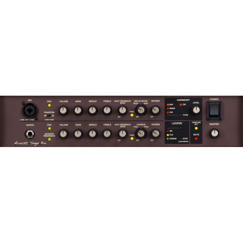 Обратите внимание, что усилитель ACS Pro, кроме всего сказанного, оборудован еще и выделенным микрофонным каналом, позволяющим поющему гитаристу получить предельно компактное и при том высокоэффективное решение для любых его исполнительских задач и планов. Обособленная входная схема полностью гарантирует гармоничное и кристально чистое звучание, а фантомное питание дает возможность для того, чтобы задействовать еще и конденсаторные микрофоны студийного качества. Тут же предусматриваются 3-полосный эквалайзер, эргономичный переключатель фазы, специализированный узкополосный фильтр, предназначающийся для подавления обратной связи, а также отменные эффекты эхо/задержки и реверберации, нужные для всестороннего обогащения звучания пользовательского вокала.