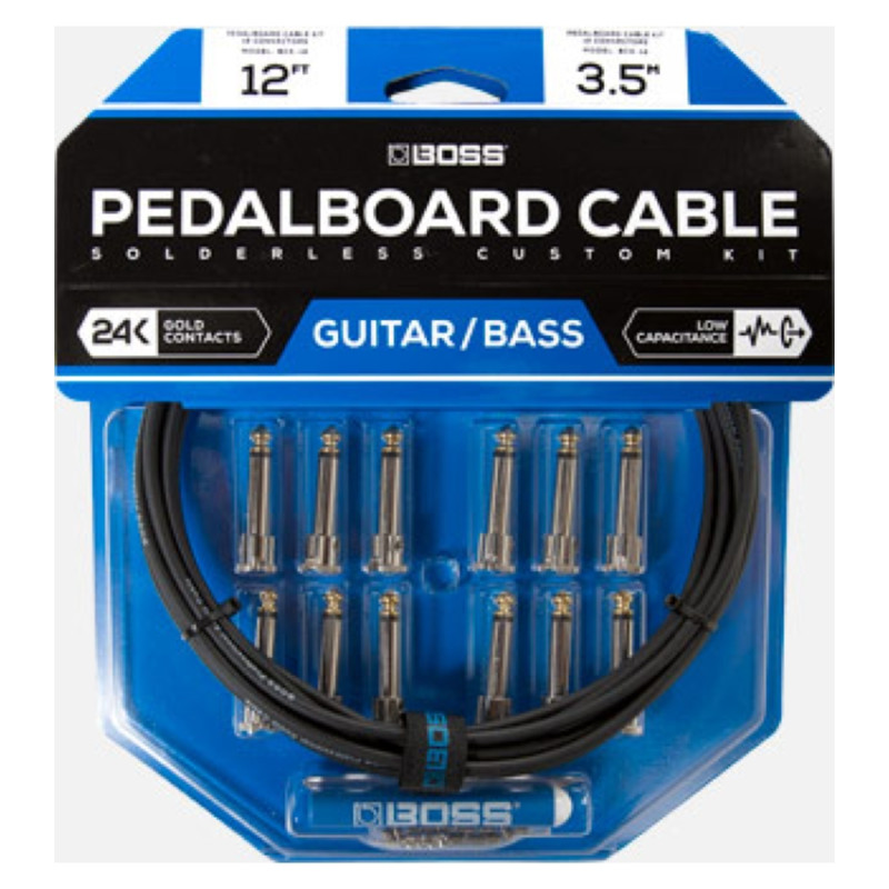 Когда дело доходит до организации педалей, это может быть довольно проблематично. Ведь не все педалборды имеют одинаковый размер, либо имеют входы/выходы в неудобном месте, и многие гитаристы обнаруживают, что стандартный патч то короткий, то слишком длинный. Теперь благодаря кабельному комплекту Boss BCK-12 появилось высококачественное решение для всей вашей электроники без пайки. Даже если вам никогда раньше не приходилось собирать собственные патч-кабели, сделать данный вам не составит труда. Просто отрежьте кабель необходимой длины, а затем установите разъем к концу и просто затяните один винт заземления на каждом джеке. Кроме того, с помощью BCK-12 вы сможете расположить свои педали на расстоянии 1 см друг от друга. В набор входит 3,5 м кабель, который изготовлен из бескислородной меди и обеспечивает тихой работой в течение долгих лет, благодаря высококачественному плетеному экранированию, плюс 12 двунаправленных 1/4" джеков с позолоченными 24 карата контактами.