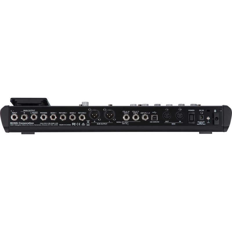 Основные органы управления сосредоточены на лицевой панели. Там находятся 7 регуляторов, 3 футсвича, 6 кнопок и ЖК-дисплей, с помощью которых можно полноценно управлять функционалом процессора. Для более удобной настройки существует программа BOSS Tone Studio для операционных систем macOS и Windows. Для подключения к ПК предусмотрен порт Micro USB-B. Таким же образом в устройство можно загрузить до 16 пользовательских импульсов кабинетов, а также использовать прибор как USB-аудиоинтерфейс.