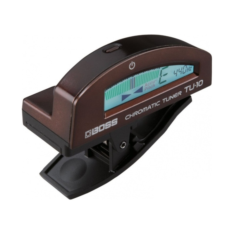 BOSS TU-10-BN - Хроматический тюнер-клипса для настройки электро-, бас-гитары, прочих струнных инструментов. Цвет: коричневый