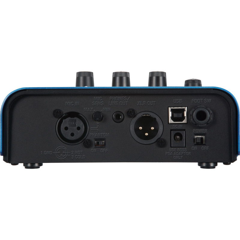 Данная модель разработана специально для вокалистов. Несмотря на компактные размеры, помогает сделать вокал более ярким и интересным. Boss VE-1 Vocal Echo можно использовать как в студии, так и на выступлениях. На борту имеются 7 типов эхо, эффект Double, Pitch Correct и Enhance. Благодаря регуляторам, расположенным на передней панели, каждый эффект можно настроить под определенное звучание. Для работы с конденсаторными микрофонами предусмотрено фантомное питание. На задней панели расположены: XLR вход для подключения микрофона, XLR выход, Mini Jack Phone/Line audio output, порт USB, а также 1/4" Jack разъем для Footswitch.