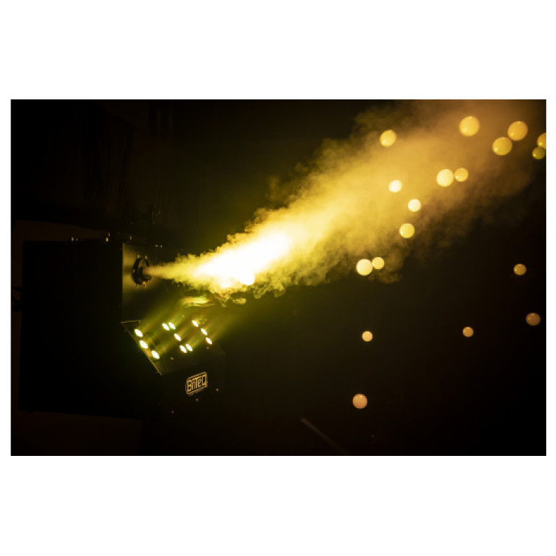 Мощная комбинация генератора пузырей и тумана с 11 светодиодами 8 Вт-RGBA. Каждый эффект можно использовать по отдельности или комбинировать для создания пузырьков, наполненных туманом. Оснащен двойным вентилятором для выдувания пузырьков и/или дыма на несколько метров. Управляется через: