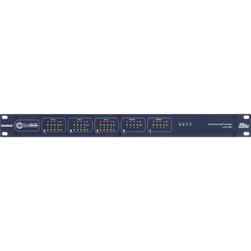 BSS BLU-101 аудио-матрица с процессором. 12 аналоговых mic/line входов, 8 аналоговых выходов. 12 независимых алгоритма AEC (подавление эха), BLU-Link, без CobraNet.