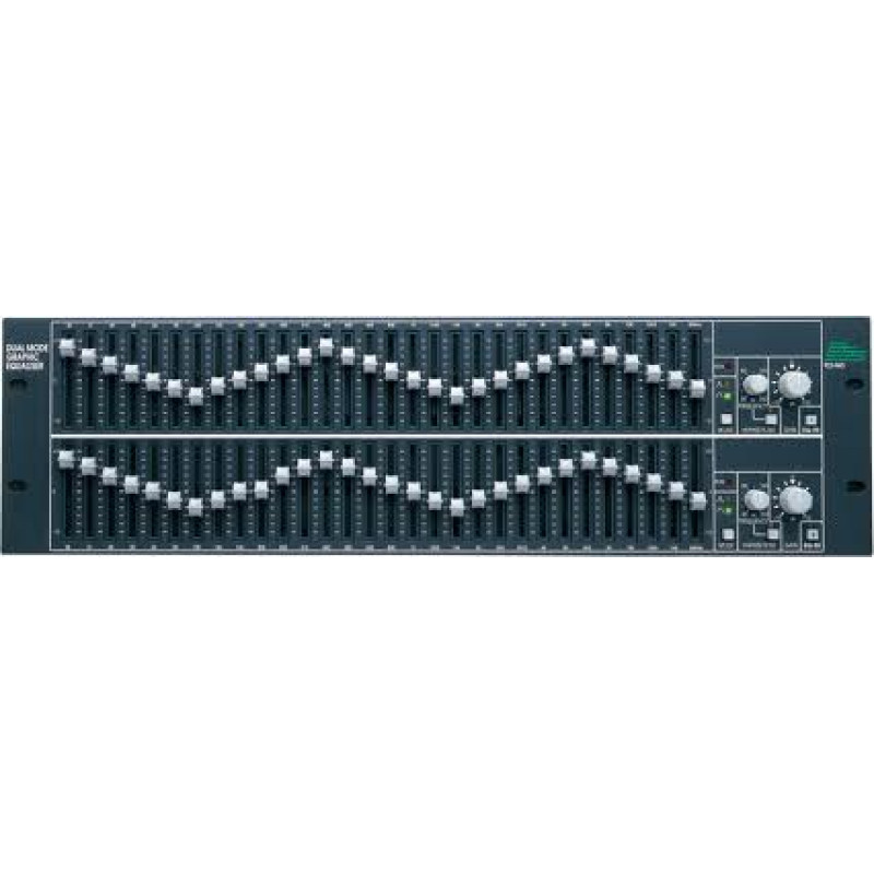 BSS FCS-960 графический эквалайзер двухканальный 30-полосный с постоянной добротностью, 45мм фейдеры, 2 входа (XLR,1/4" TRS jack и Phoenix/Combicon), 2 выхода (XLR,1/4" TRS jack и Phoenix/Combicon), 8-сегментный индикатор выходного сигнала,3U.