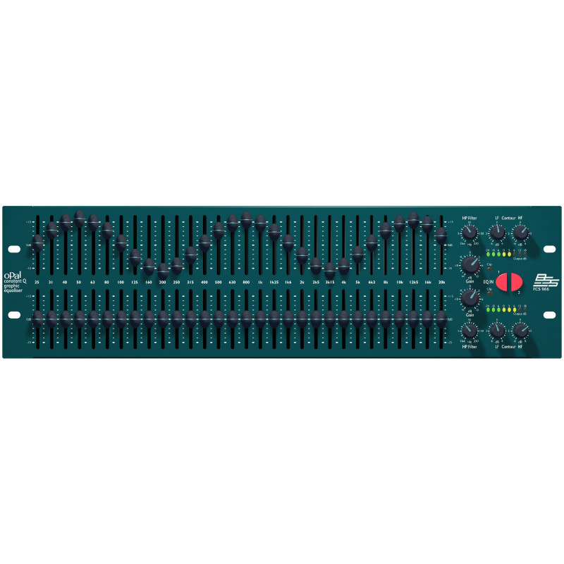 BSS FCS-966 "Opal" Двухканальный 30-полосный графический эквалайзер с постоянной добротностью, прецизионные 45мм фейдеры, 2 входа (XLR ), 2 выхода (XLR), 3U.