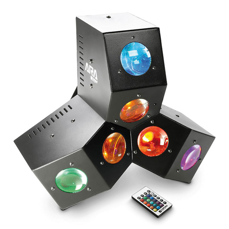 Благодаря уникальной конструкции из трех «ветвей» и великолепным матричным эффектам дерби, Cameo Ara - настоящее зрелище. 3-ваттные светодиоды Quad создают яркий набор цветов RGBA, и каждый из 24 светодиодов можно управлять индивидуально через DMX для обеспечения великолепных характеристик освещения.