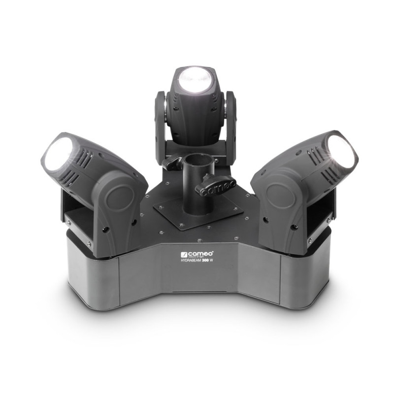 Cameo HydraBeam 300 это комплект освещения с 3 сверхбыстрыми вращающимися головами, смонтированные в одном треугольном корпусе, которыми можно управлять независимо. Они оснащены Они оснащены ультра яркими белыми светодиодами Lumi-Engin мощностью 10 Вт, беспечивающими узкий угол луча 4,5 ° каждый и в общей сложности 92 000 люкс. Вращающиеся головы поворачиваются на 540 ° по горизонтали и на 270 ° по вертикали и охлаждаются крайне малошумящим вентилятором.