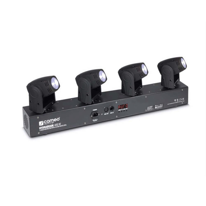 Cameo HydraBeam 400 - это комплект освещения с 4 сверхбыстрыми вращающимися головами, которыми можно управлять независимо. Они оснащены высокоинтенсивными белыми 10 Вт. светодиодами Lumi-Engin, обеспечивающими узкий угол луча 4,5 ° и интенсивностью света 84 000 люкс. Вращающиеся головы поворачиваются на 540 ° по горизонтали и на 270 ° по вертикали и охлаждаются крайне малошумящим вентилятором.