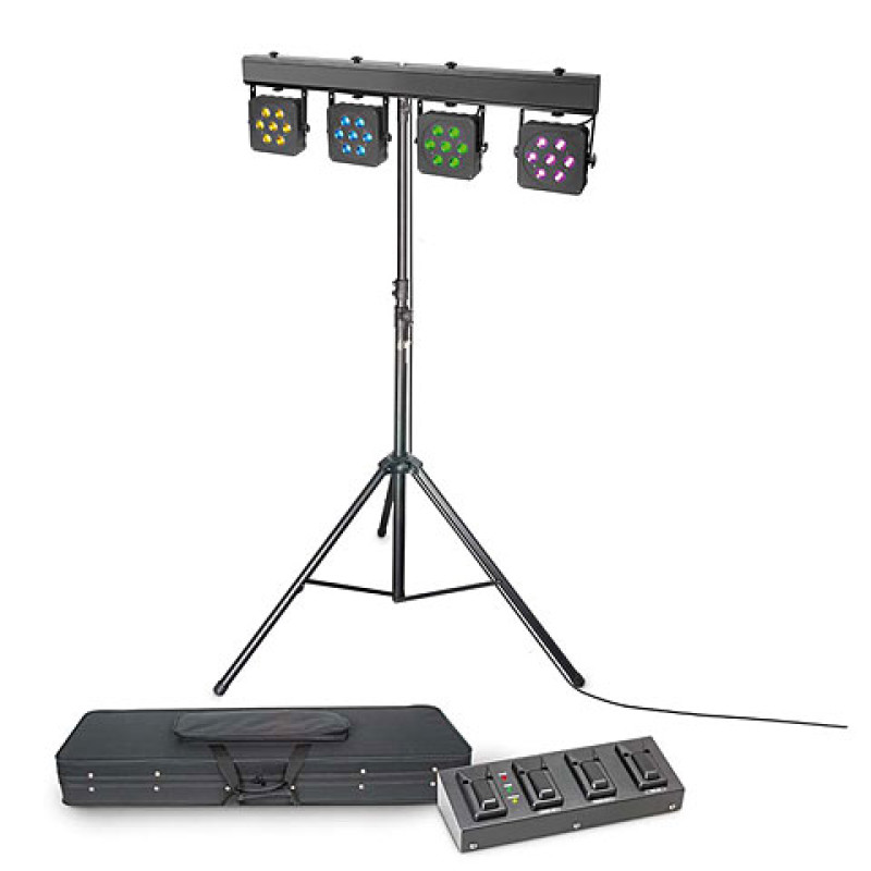 - Модель:Система с 4 LED прожекторами 7х3Вт RGB, чехол, стойка, педаль