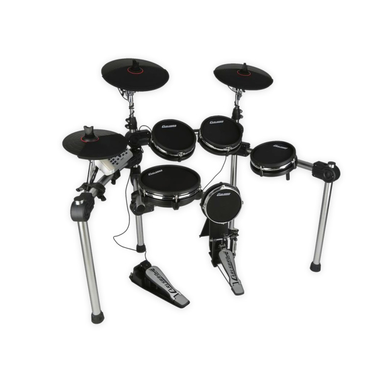 Комплект из 8 компонентов электронной ударной установки с новым звуковым модулем Commander 500, в которых входят пять сетчатых пэдов ударных и три тарелки.