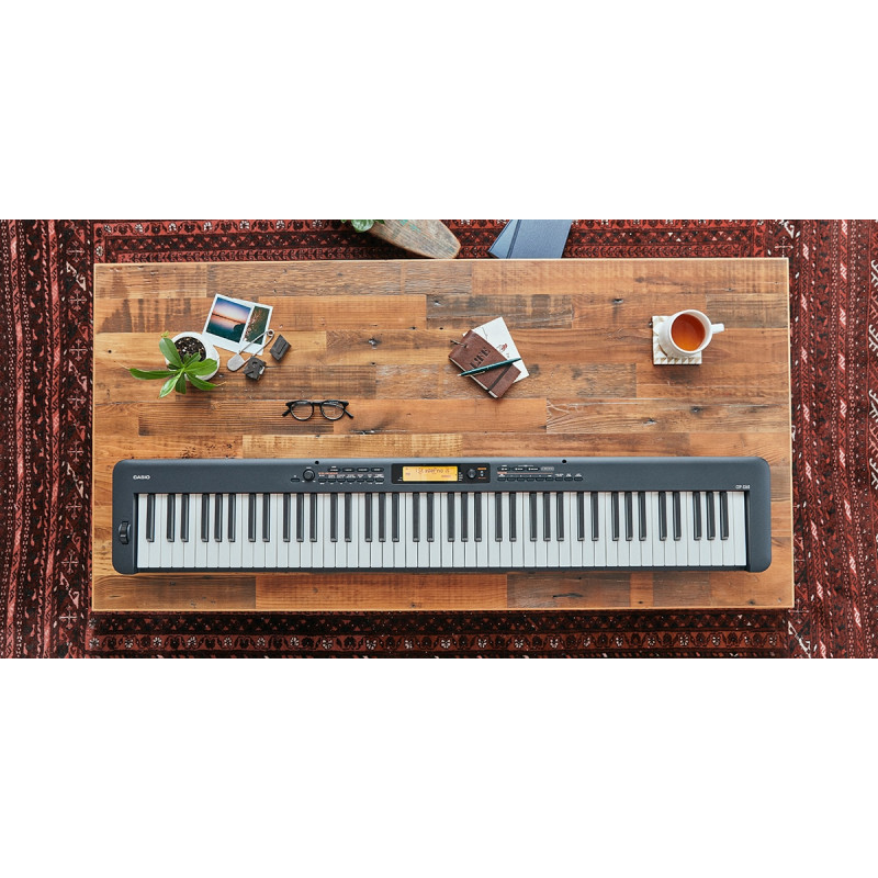 Режим дуэта позволяет поделить клавиатуру на две зоны, каждая из которых будет играть в одинаковом диапазоне. Можно использовать различные комбинации: родитель-и-ребенок, учитель-и-ученик и другие. Метроном и функция записи помогут в тренировках и занятиях по музыке. Управление инструментом можно осуществлять при помощи бесплатного приложения Chordana Play for Piano для планшета или смартфона. Благодаря MIDI-плееру можно прослушивать треки. Цифровое пианино оборудовано ЖК-дисплеем, на котором отображается вся необходимая информация.