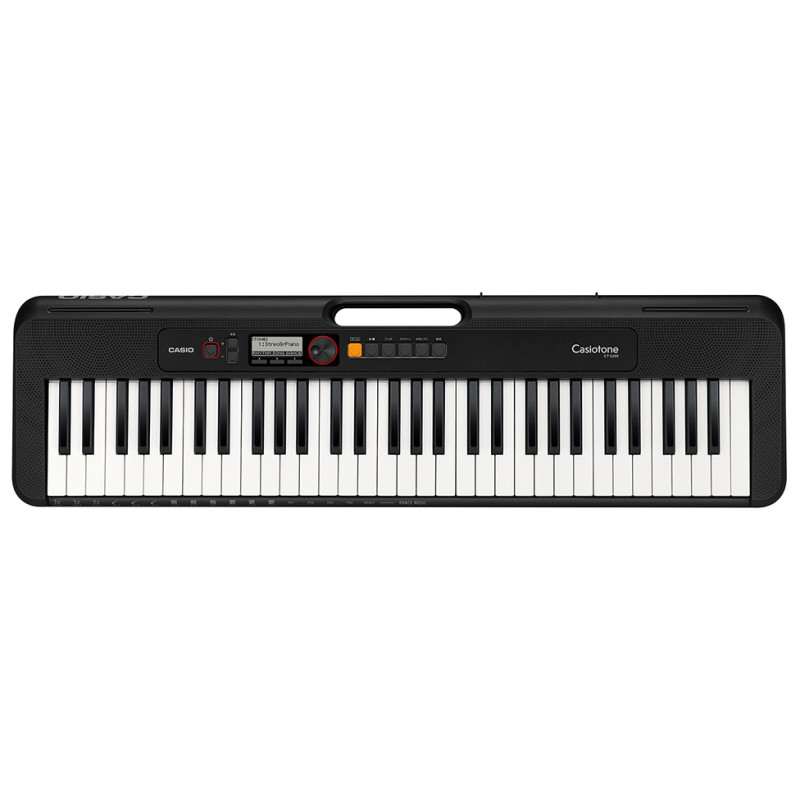 CASIO CT-S200BK – портативный синтезатор из линейки CASIOTONE от знаменитого японского производителя. Синтезатор оснащен 61-клавишной клавиатурой фортепианного типа. Это компактная модель весом всего 3,3 кг, которая может работать как от сети, так и автономно от батарей (6 батареек АА). Сверху есть ручка для переноски в руке, эргономичный обтекаемый дизайн корпуса делает синтезатор идеальным для транспортировки. Интерфейс синтезатора прост, удобен и интуитивно понятен. Полифония – 48 нот. Доступны 400 встроенных тембров, 60 предустановленных композиций, 77 вариантов ритма, реверберация десяти типов, метроном. Предусмотрена возможность подключения к компьютеру через USB. Встроенные овальные динамики размером 13 х 6 см с усиленными магнитами выдают удивительно мощное и качественное для такого компактного инструмента звучание. Дополнительная оптимизация эквалайзера в сочетании с громкости обеспечивает сбалансированный звук на всем частотном диапазоне даже на самой низкой громкости. Для тихих занятий имеется выход на наушники. Синтезатор выпускается в трех вариантах цветового исполнения. Представленная модель – черного цвета.