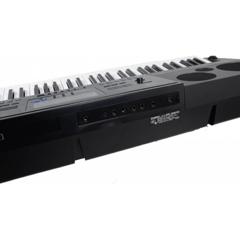 Casio WK 6600 синтезатор. Цифровой синтезатор CASIO WK 6600 является новинкой в серии недорогих синтезаторов, который был представлен компанией CASIO на ежегодной музыкальной выставке SUMMER NAMM 2012, где получил достаточно высокие отзывы. Отличительными особенностями цифрового синтезатора КАСИО ВК 6600 является качественный тон-генератор и встроенный набор цифровых эффектов, которыми Вы можете управлять в режиме реального времени. Синтезатор оснащен фортепианной клавиатурой и полувзвешенной механикой. 48-ми нотная полифония и 16-трековый песенный секвенсор позволит Вам создавать красивые, качественного звучащие, оригинальные музыкальные композиции, где бы Вы не находились! Клавиатура синтезатора обладает чувствительностью к нажатию, а так же имеет фортепианную форму, как на классическом инструменте. Такой тип полувзвешенной механики максимально близко приближает музыканта к ощущениям игры, как на акустическом инструменте. Полифония синтезатора в 48 нот, она позволяет воспроизводить звучание в естественной акустической длительности. Если Вы играете с аккомпанементом, будьте уверены, что Ваш музыкальный рисунок всегда будет насыщенным и чётким. Функция автоаккомпонемента синтезатора дает возможность самостоятельно выбирать музыкальные стили, от рока и джаза, до классических музыкальных стилей. Автоаккомпонемент содержит 210 встроенных ритмов, позволяющих играть в широком музыкальном диапазоне. Яркий и четкий ЖК дисплей отображает выбранные ритмы и ноты, а так-же, задействованные Вами музыкальные инструменты в режиме реального времени. Синтезатор оснащен двух-полосной акустической системой Bass Reflex, с 4-мя динамиками и общей мощностью в 12 Ватт, выдающее насыщенное и гармоничное звучание.