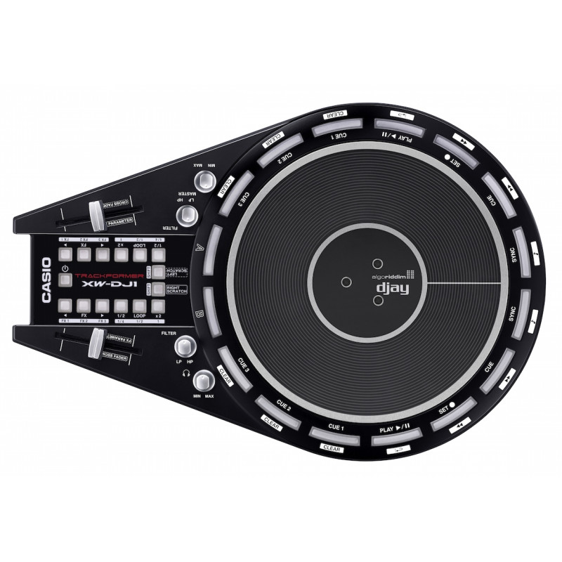 Casio XW-DJ1 предназначена для профессионального скретча. В оснащении устройство имеет семидюймовый джог и встроенный динамик. Питание осуществляется от батареек. XW-DJ1 имеет довольно необычную форму, он подключается к компьютерам, управляемым ОС Macintosh и Windows, IPad и iPhone, для чего необходимо лишь скачать соответствующее приложение на имеющийся девайс. После этого можно запросто проигрывать любимые треки. XW-DJ1 совместим с DJ-приложением Djay 2 для плееров IPodTouch, а также iPhone,iPhone. Программа DJ для Mac’ов обладает аналогичным названием - Djay. Для систем Windows требуется скачать приложение Deckadance. Кроме того, существует масса других популярных аналогичных программ. Casio XW-DJ1 - это уникальный диджейский контроллер, имеющий встроенный динамик, очень удобный и компактный для транспортировки, работающий от пальчиковых батареек АА. С данной моделью можно заниматься диджеингом в любом месте. XW-DJ1 оснащается семидюймовым джогом, где абсолютно точно смоделированы специальные канавки с виниловых аналоговых пластинок.