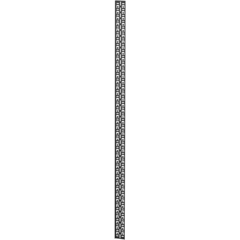 Благодаря специальному вырезному рисунку обеспечивается достаточное количество монтажных отверстий и Т-образных вырезов для удобной шнуровки и прокладки кабеля. Органайзер изготовлен из стали толщиной 1,2 мм. Покрыт порошковой краской черного цвета (RAL9004). Ширина 80 мм.