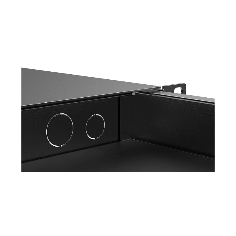 - Выдвижные отверстия на задней стенке лотка для ввода кабеля.