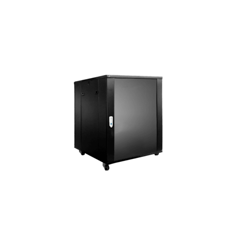 Поставляется в полностью собранном виде включая 50 мм транспортировочные ролики и регулируемые ножки. Рама из 2 мм стали холодного проката и панели из 1,2 мм стали обеспечивают прочную и стабильную конструкцию. Боковые панели съёмные. Вертикальные направляющие с удобной регулировкой по глубине. Передняя дверь реверсивная из закаленного стекла. Встроенная вентиляционная решетка сверху. Задняя и передняя дверь с ключевым замком.