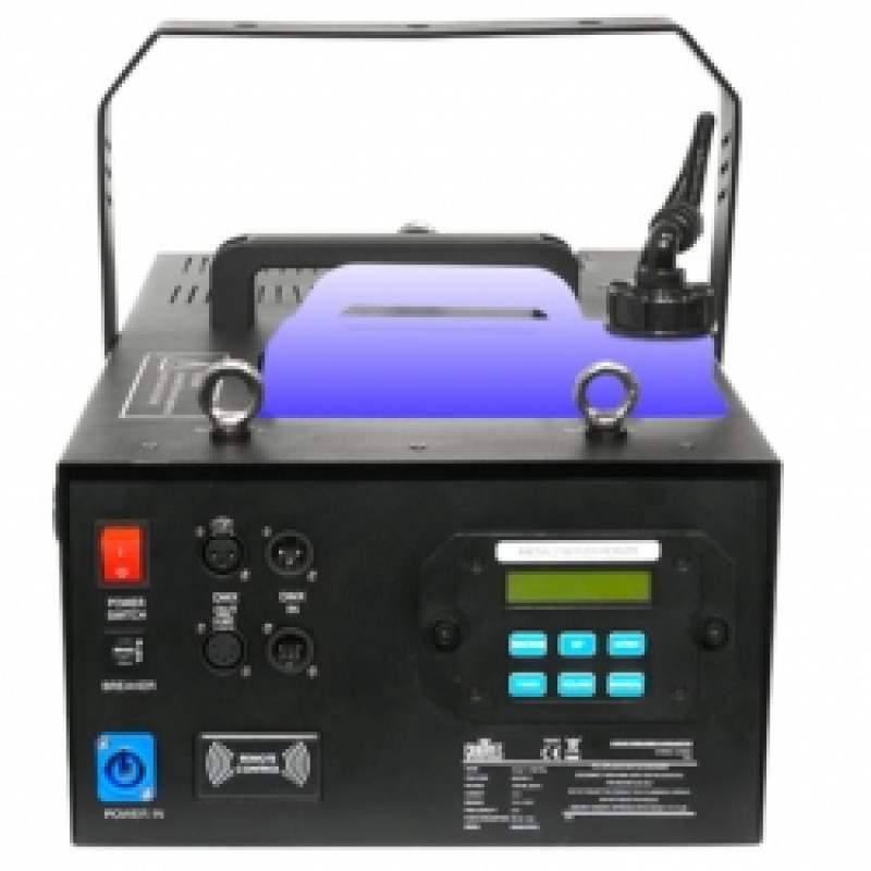 Генератор дыма, корпус с функцией изменения направления рассеивания. Нагреватель мощностью 2100 Вт. Беспроводной ПДУ в комплекте. Управление по DMX512, 1 канал управления. Автоотключение при отсутствии жидкости. LCD дисплей для адресации. Габариты 532x390x368мм. Вес 15,8кг.