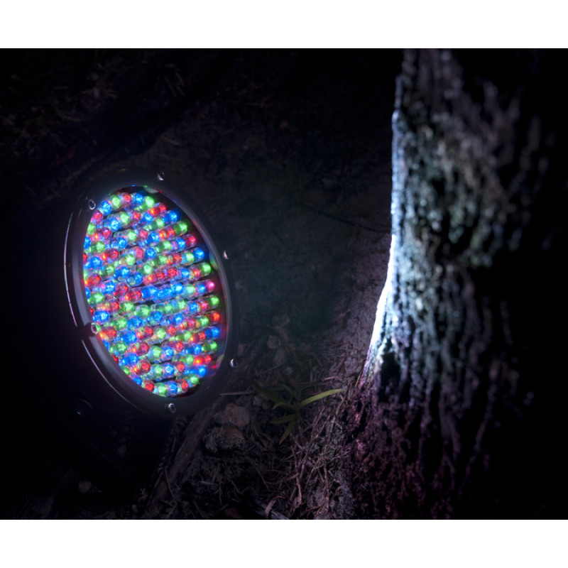 светодиодный всепогодный прожектор направленного света типа PAR с встроенным ИК сенсором. 108х10мм светодиодов(36R+36G+36B), IP65, управление auto/ИК/DMX, 3/7 каналов DMX, угол раскрытия 14град, угол засветки 23град, универсальный блок питания 100-240В, потребление до 21Вт, вес 1,9кг, ДШВ 236х203х82мм.