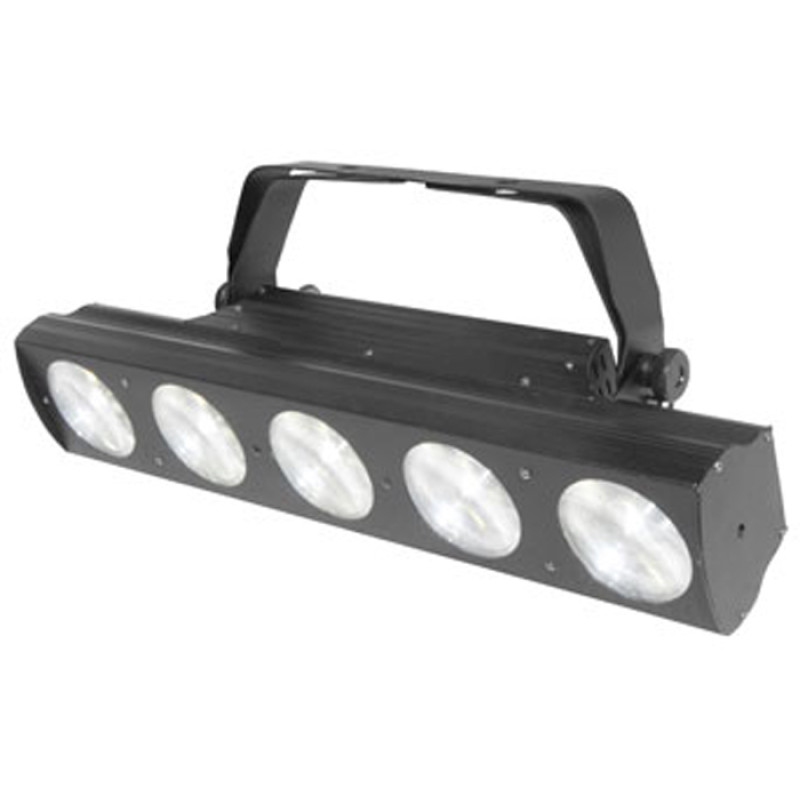 светодиодный линейный прожектор-эффект. 5х6Вт белых светодиодов, 4/5 каналов DMX, угол раскрытия каждого из лучей 4град, универсальный блок питания 100-240В, потребление до 43Вт, вес 3,1кг, ДШВ 500х98х217мм.