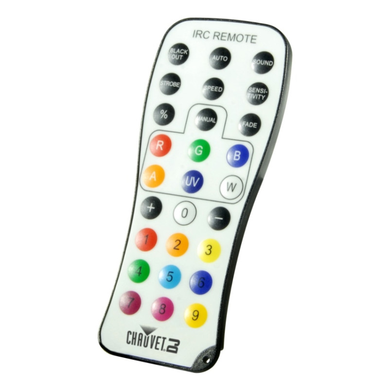 Предназначен для использования с IRC-совместимыми световыми приборами. Он обеспечивает мгновенный доступ к заранее запрограммированным сценам, параметрам смешивания цветов и регулировки скорости «на лету». Этот компактный и легкий пульт ДУ работает в диапазоне до 9 метров.